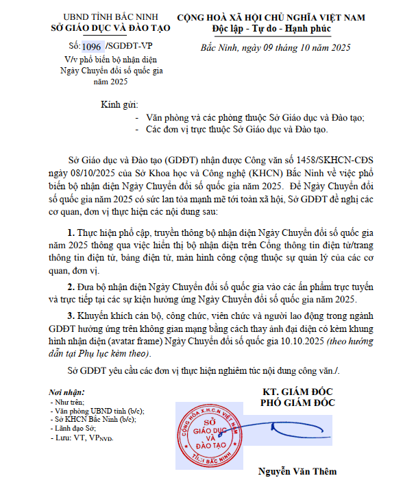 • Công văn 1096/SGDĐT-VP về phổ biến, nhận diện ngày chuyển đổi số Quốc gia năm 2025
