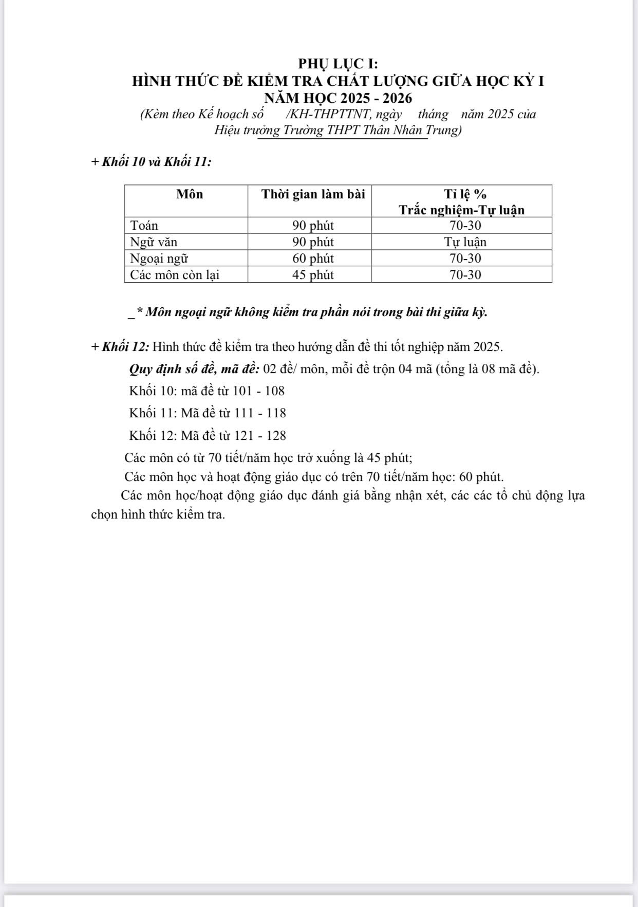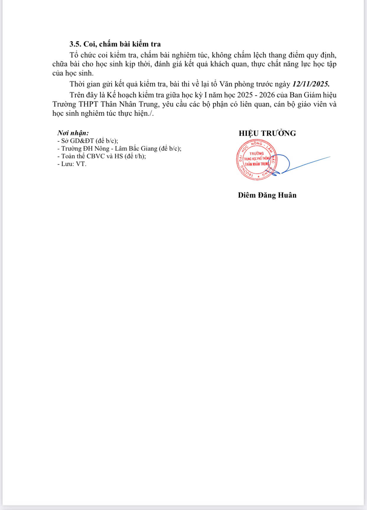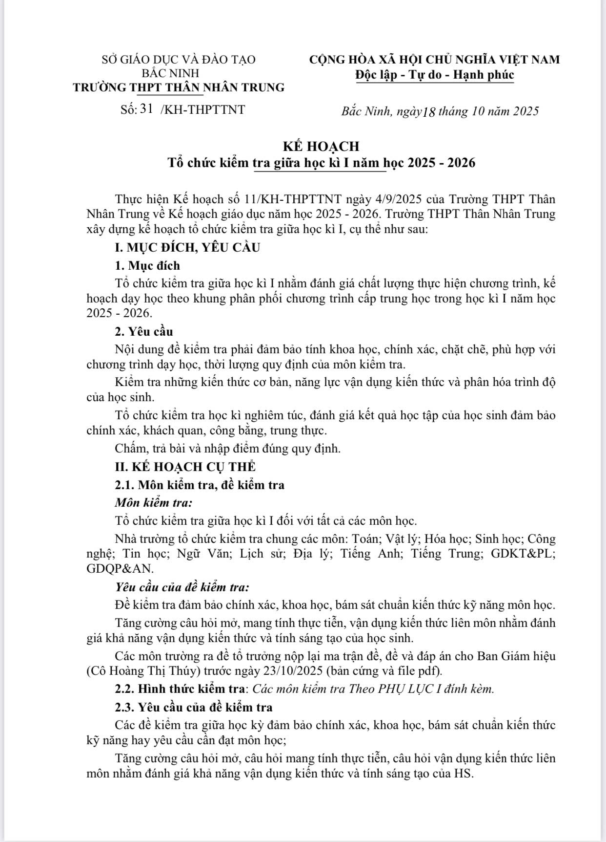 Kế hoạch tổ chức kiểm tra giữa học kì I năm học 2025- 2026 Posted by THPT TNT Categories Thông báo, Tin tức - Sự kiện Date October 21, 2025 THPT TNT Previous post Trường Đại học Nông - Lâm Bắc Giang phát động ủng hộ đồng bào bị ảnh hưởng do bão lũ October 21, 2025 You may also like Phiên họp đầu tiên xây dựng Đề án thi tốt nghiệp THPT trên máy tính 20 October, 2025 Trường THPT Thân Nhân Trung tập huấn “Sổ tay AI” cho CBVC và người lao động 20 October, 2025 Đại hội Chi hội Khuyến học lần thứ I, nhiệm kỳ 2025 – 2030 diễn ra thành công tốt đẹp 19 October, 2025