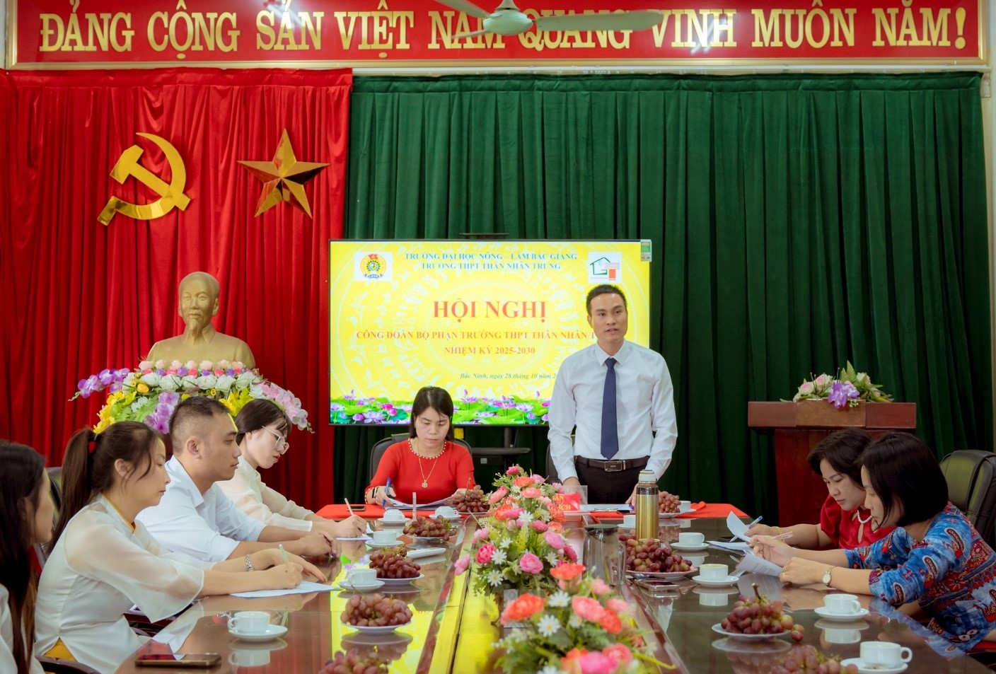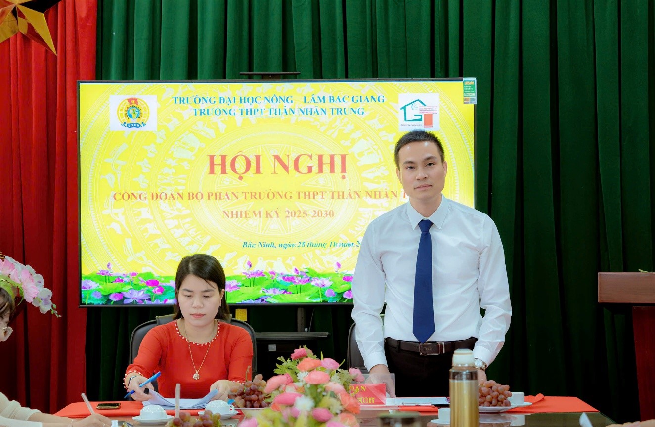Chiều ngày 28 tháng 10 năm 2025, Công đoàn Trường THPT Thân Nhân Trung đã long trọng tổ chức “Hội nghị Công đoàn bộ phận trường THPT Thân Nhân Trung nhiệm kì 2025 – 2030”, trong không khí dân chủ, đoàn kết và đầy hứng khởi. Hội nghị là dịp để toàn thể cán bộ, giáo viên, nhân viên trong nhà trường cùng nhìn lại kết quả hoạt động của năm học vừa qua, thẳng thắn đánh giá những mặt đã làm được và những điểm còn hạn chế; đồng thời đề ra phương hướng, nhiệm vụ cho năm học mới với tinh thần “Đổi mới – Dân chủ – Kỷ cương – Sáng tạo – Phát triển”.